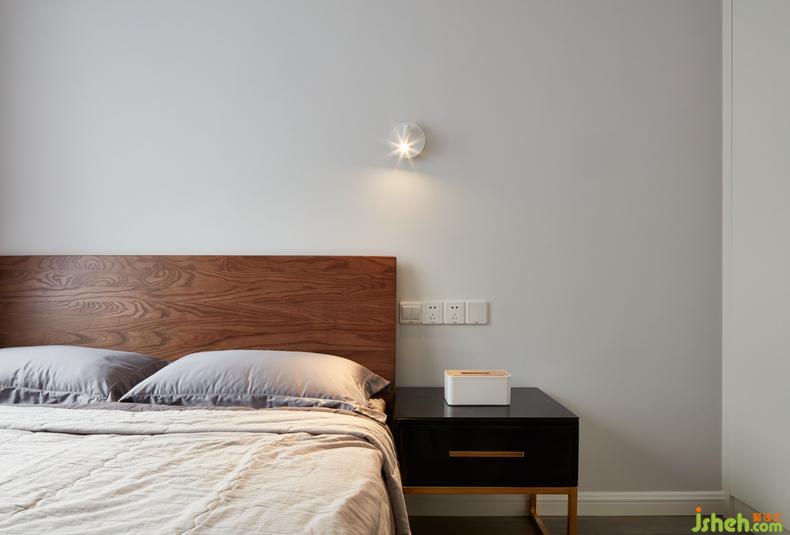 一床,一幾,一壁燈,一束光透過百葉窗,一切顯得都剛剛好,極簡的細節(jié)到位也實用。