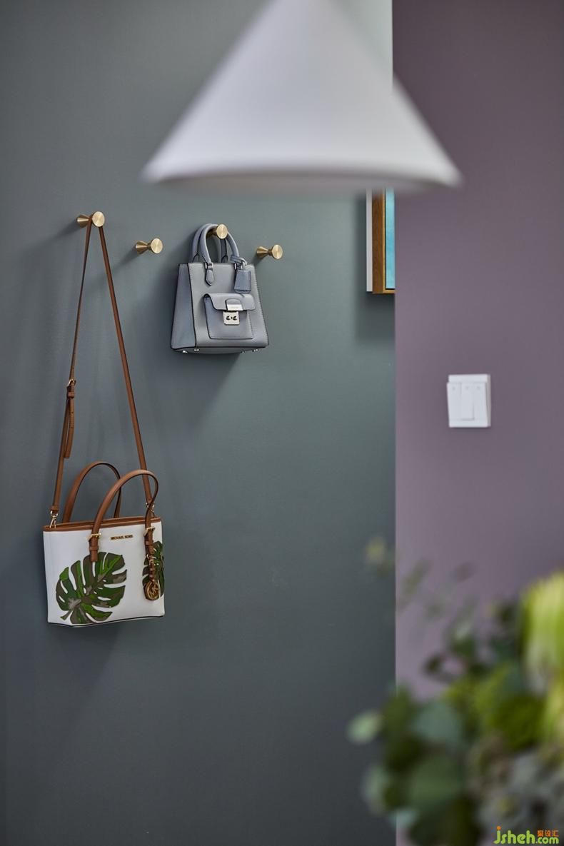 入戶過道的不只是考慮收納及實用,而在地面,墻面的色彩上重點下功夫。拋開艷麗的顏色,選擇灰度更重的自然灰綠。每當步入玄關,就像是踩著森林里的巖石,伸手即可以撫摸到森林的深處。設計公司