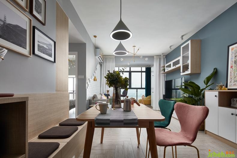 此時(shí)的餐廳在復(fù)古撞色搭配中,讓人很想置身其中的靜謐?;叶鹊谋壤芽?,讓空間的森林系得到自然延伸。一切的一切,在不同層次的燈光中,顯得像有主次,卻又不用那么分明刻意。設(shè)計(jì)公司