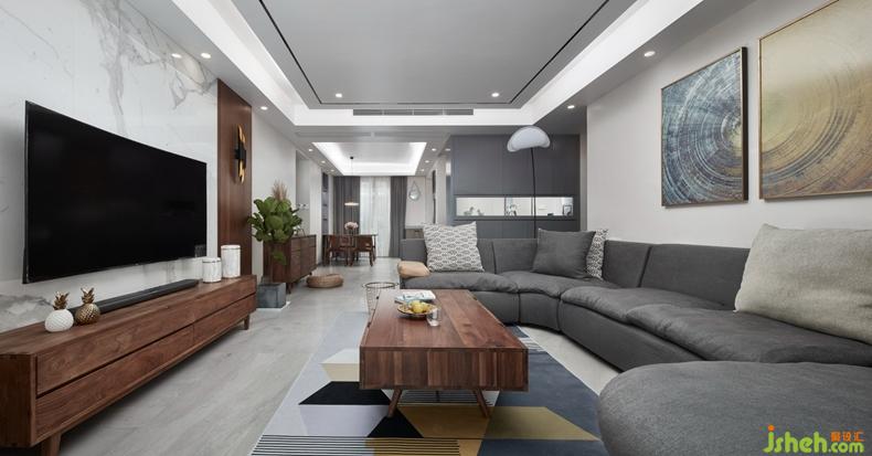 客廳的無主燈設(shè)計(jì),讓整個(gè)空間的延伸性得到最大化展現(xiàn)。黑胡桃與灰色的融洽搭配,是本套設(shè)計(jì)中始終貫穿的表現(xiàn)。韻律的連貫美學(xué),也在設(shè)計(jì)師表達(dá)中體現(xiàn)出質(zhì)感的輕松愉悅。