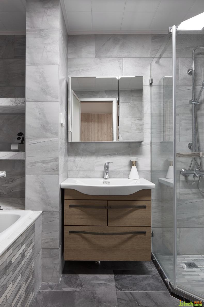 公衛(wèi)洗手臺(tái)采用外置設(shè)計(jì),拓展過(guò)道實(shí)用性,同時(shí)也讓洗手間內(nèi)部的實(shí)用性增強(qiáng)。簡(jiǎn)潔的線(xiàn)條與木紋,在鏡燈的襯托下,顯得自然舒適。