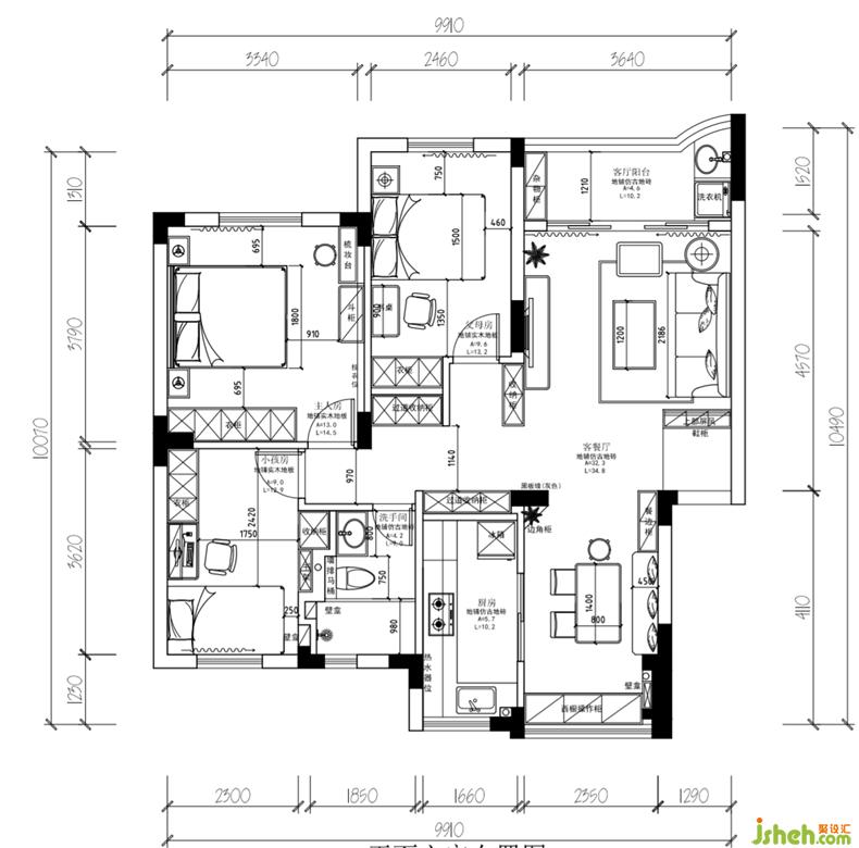 2,廚房,調(diào)整與過道及洗手間的間隔,合理規(guī)劃廚房內(nèi)的實(shí)用空間。