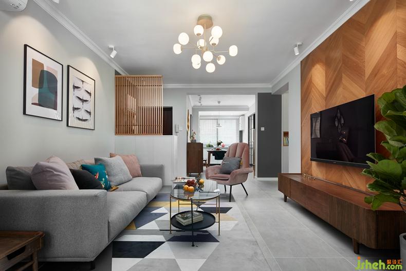 在整個(gè)客廳的區(qū)域中,唯一的硬裝飾就是實(shí)木地板上墻的點(diǎn)綴,實(shí)木的質(zhì)感紋理帶你體會(huì)自然的溫馨。在灰調(diào)的空間,原木色的出現(xiàn)可以平和淺灰墻面的清爽。深圳設(shè)計(jì)公司