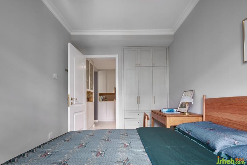 父母房的設(shè)計(jì)中采用簡單的色調(diào)點(diǎn)綴,紅橡木的實(shí)木床和書桌搭配,體現(xiàn)出紅橡的質(zhì)感紋理及溫馨的色調(diào),給空間增添讓人可以靜享的每片時(shí)光。