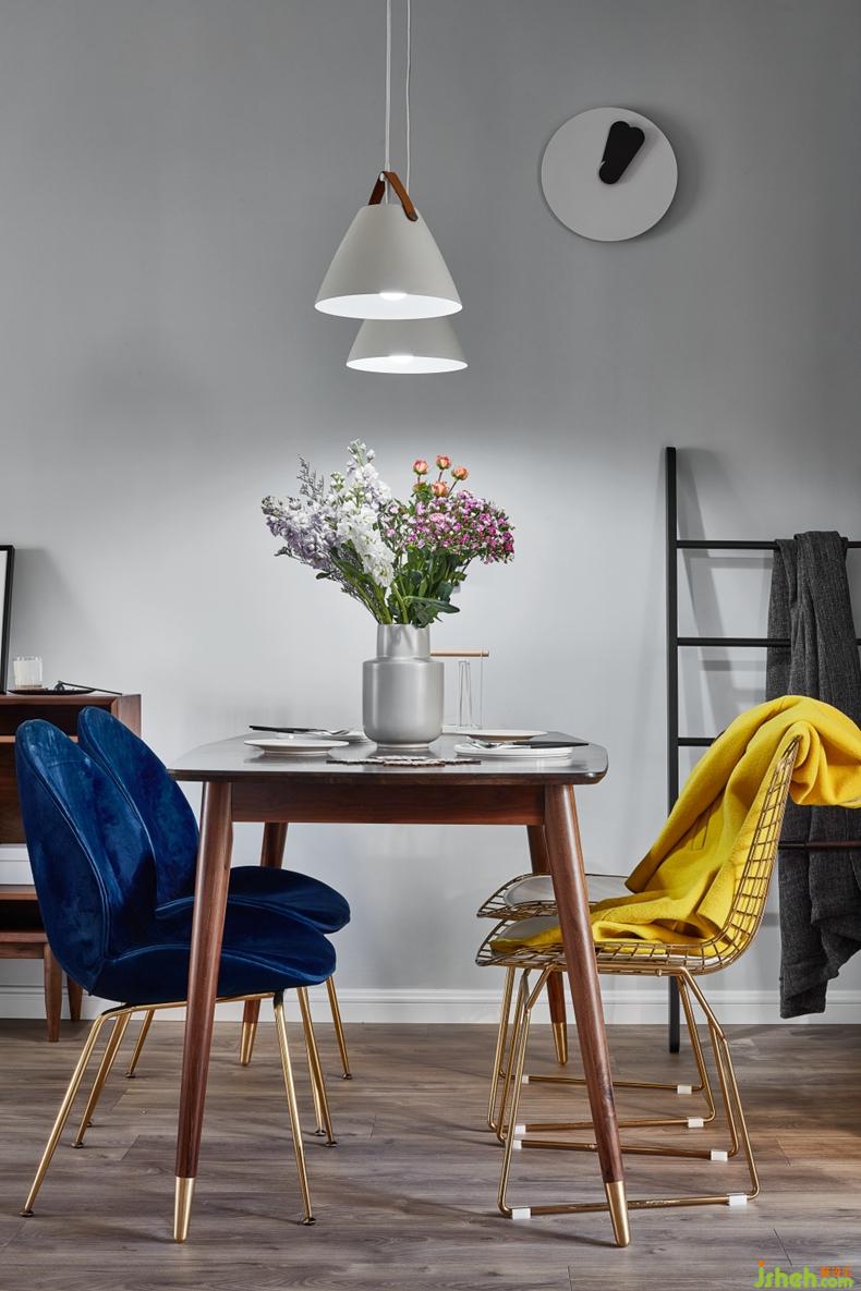 餐廳的部分墻面采用深灰色點(diǎn)綴,讓整個(gè)空間加大了視覺(jué)的延伸,空間的層次需要色彩的調(diào)節(jié)。黑胡桃木的實(shí)木餐桌,搭配金屬的邊腳,再搭配上金屬質(zhì)地的餐椅,空間的品質(zhì)就這樣體現(xiàn)的恰到好處。