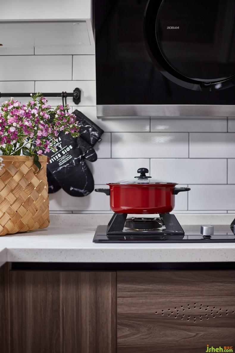 廚房的風(fēng)格延續(xù)餐廳的黑胡桃質(zhì)感,輔以純白色的墻面磚和臺(tái)面,給主人增添料理的清爽心情,同時(shí)又不失高貴的格調(diào)。深圳設(shè)計(jì)公司