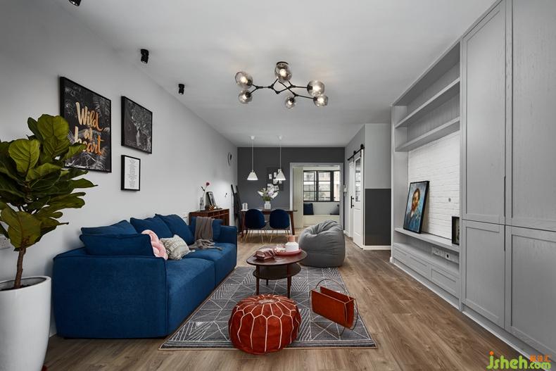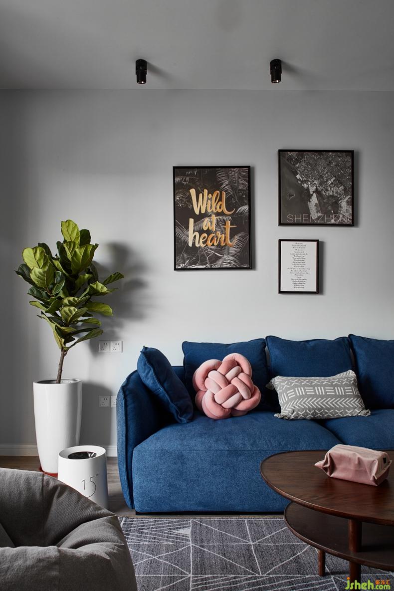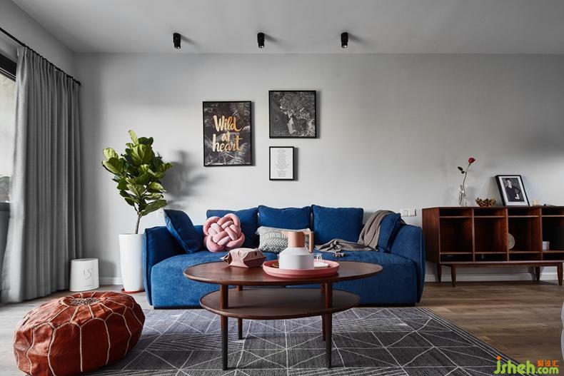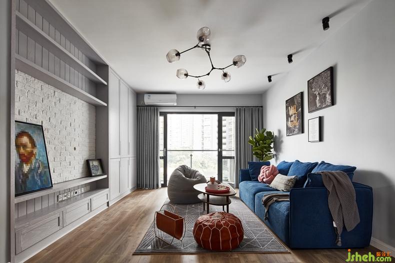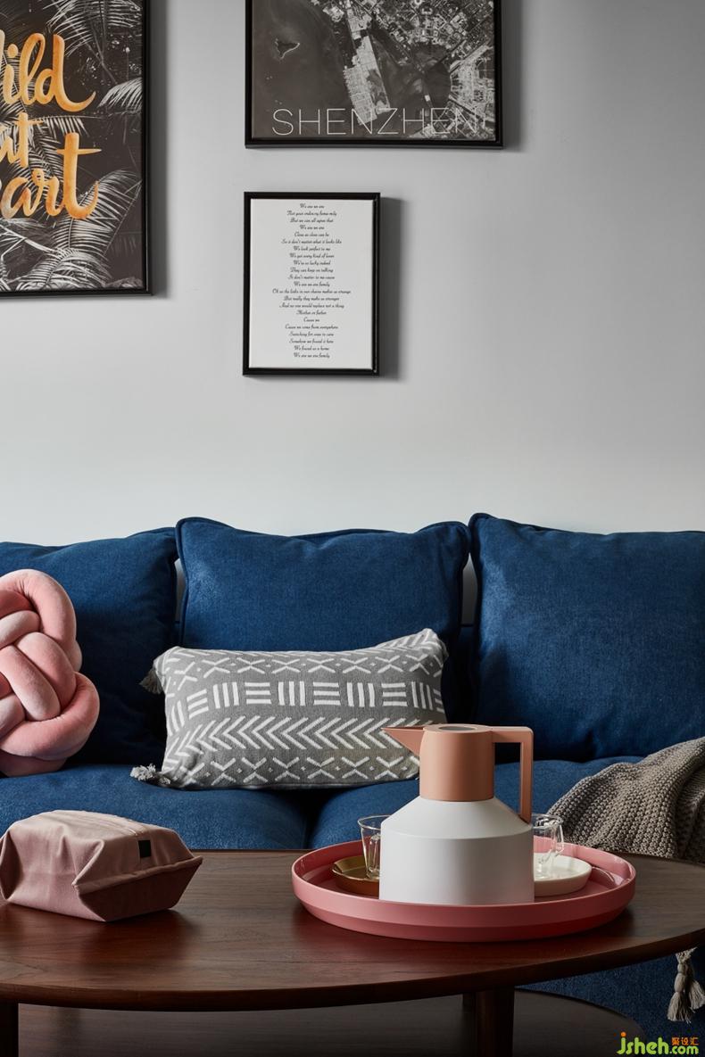 深藍(lán)的布藝沙發(fā),灰色的懶人沙發(fā),牛皮的圓形坐墊,不同于常見老套的客廳組合搭配,卻融入整個(gè)家的滿滿愛意。