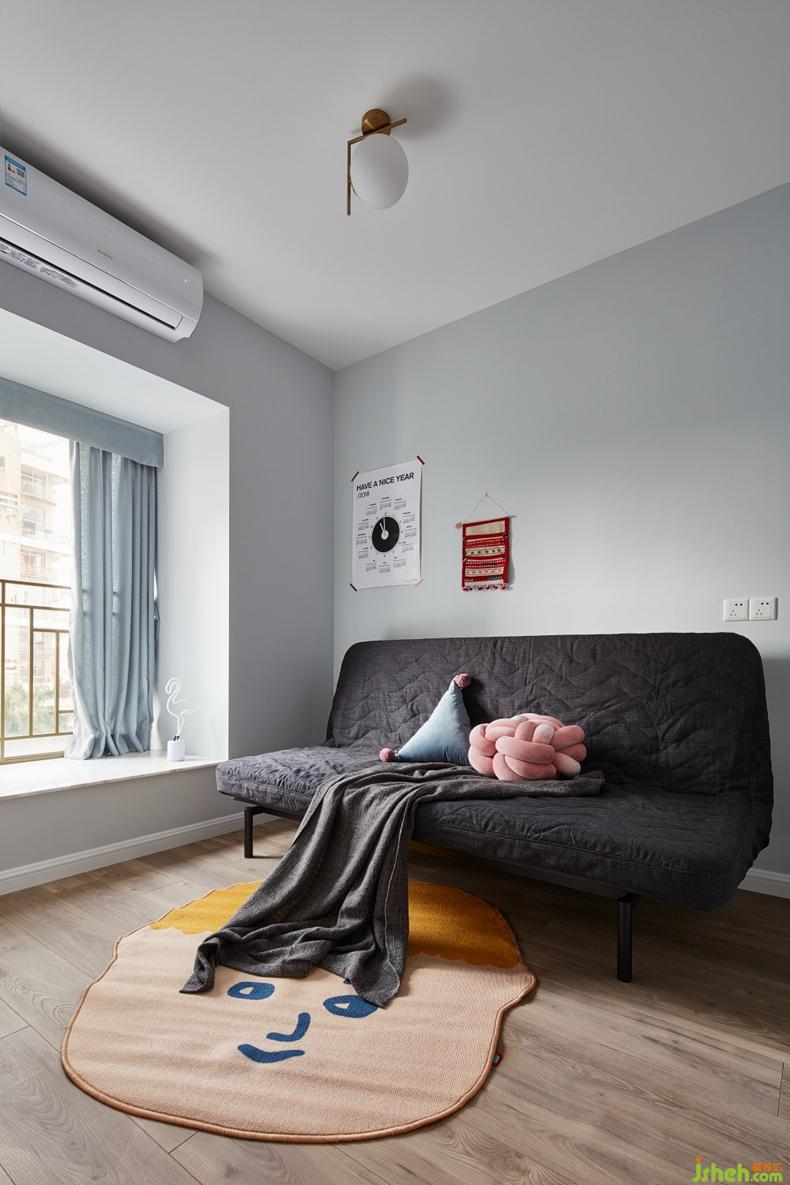 預留給未來寶寶的房間,留白是最好的處理方式,簡易的沙發(fā)折疊床,可以用活一個空間。