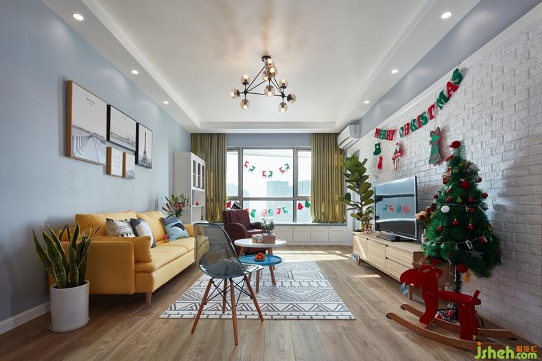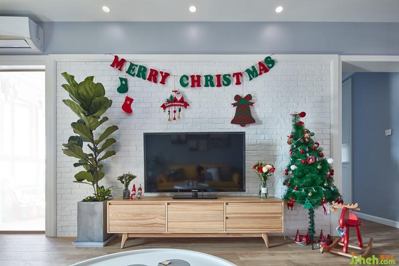 客廳:大面積墻面采用灰藍(lán)色,來(lái)調(diào)和向陽(yáng)一面的熱度,而電視背景墻面選用白色文化石,帶來(lái)許多歲月斑駁感的故事。