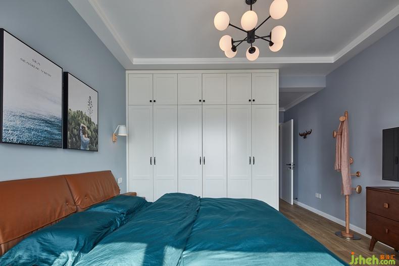 主臥:米白色的收納衣柜,與大面積深色的物品搭配,讓空間層次和色調上都起到了調和的作用,設計就是在運用不同手法來平衡實用與美感。