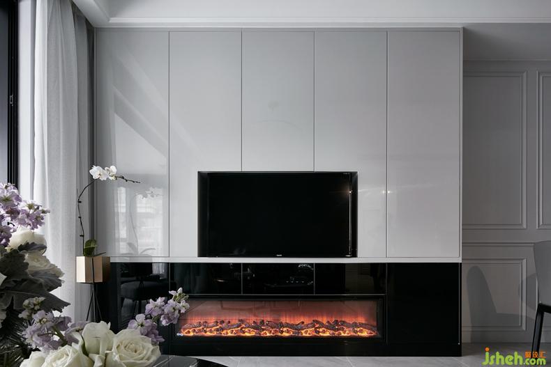 沏上一壺清茶,點上一座熏香,灰調(diào)的空間中彌漫著裊裊輕煙。電視組合柜底部電壁爐燃燒的仿真火焰,更加讓人沉浸在此刻享受的氛圍。生活的節(jié)奏慢下來,可以在此時感受舒適愜意。