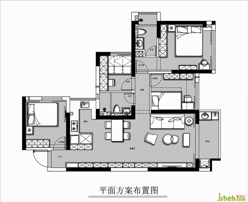 本套戶型是典型的緊湊型4室1廚2衛(wèi),且客餐廳在一條直線空間。功能很齊全,但是每個(gè)空間都很顯得很局促,設(shè)計(jì)需要優(yōu)化每個(gè)空間的實(shí)用性。