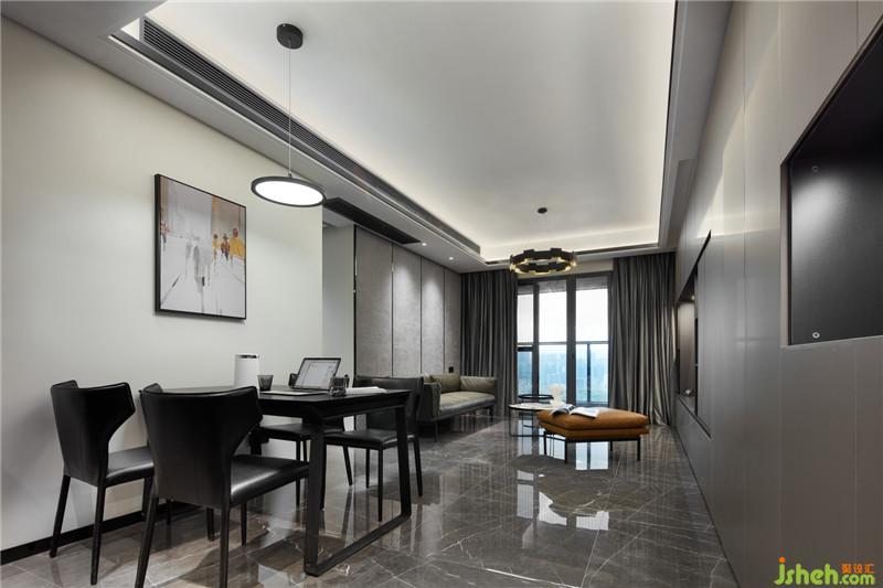 4,客廳需要保持與餐廳及廚房通透感,再加強(qiáng)空間連貫性。