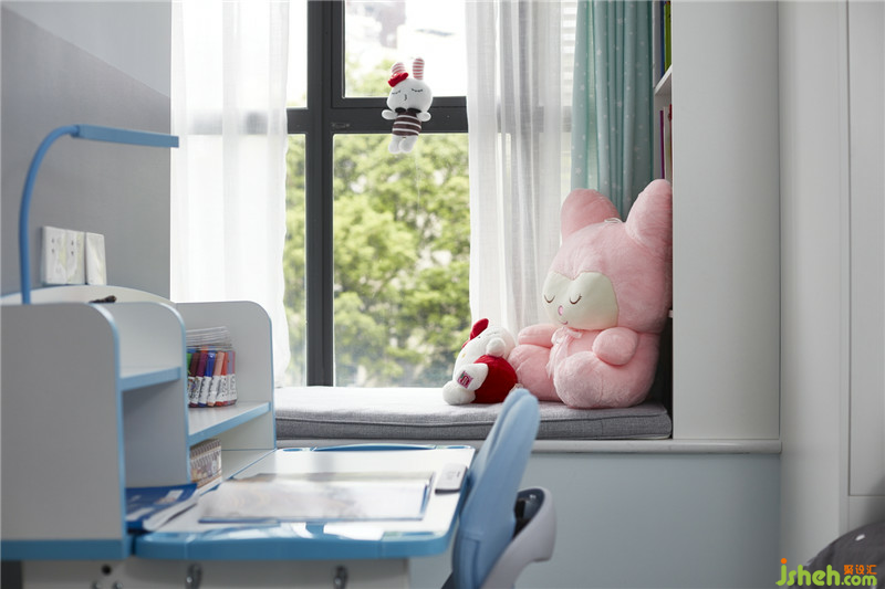 女孩房的設(shè)計(jì)搭配中,排除了以粉色為大面積的常見手法。不按常理出牌,也許是一些設(shè)計(jì)師堅(jiān)持設(shè)計(jì)的初衷。薄荷綠讓整個(gè)空間清爽且有童真的活潑感。榻榻米靠墻設(shè)計(jì),書柜,衣柜,一樣都不能少。
