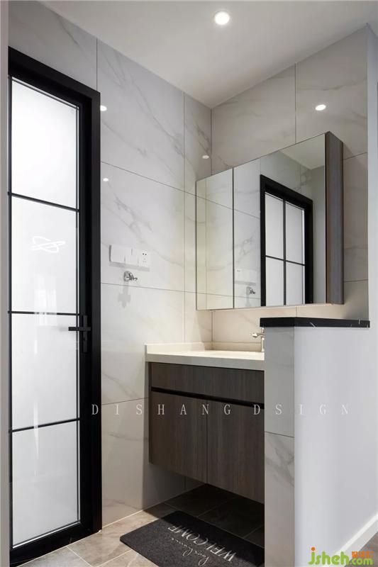 公衛(wèi)洗手臺(tái)外置的設(shè)計(jì),既保證衛(wèi)生間的干濕分離和便利性,又增強(qiáng)公衛(wèi)的利用率。室內(nèi)設(shè)計(jì)師