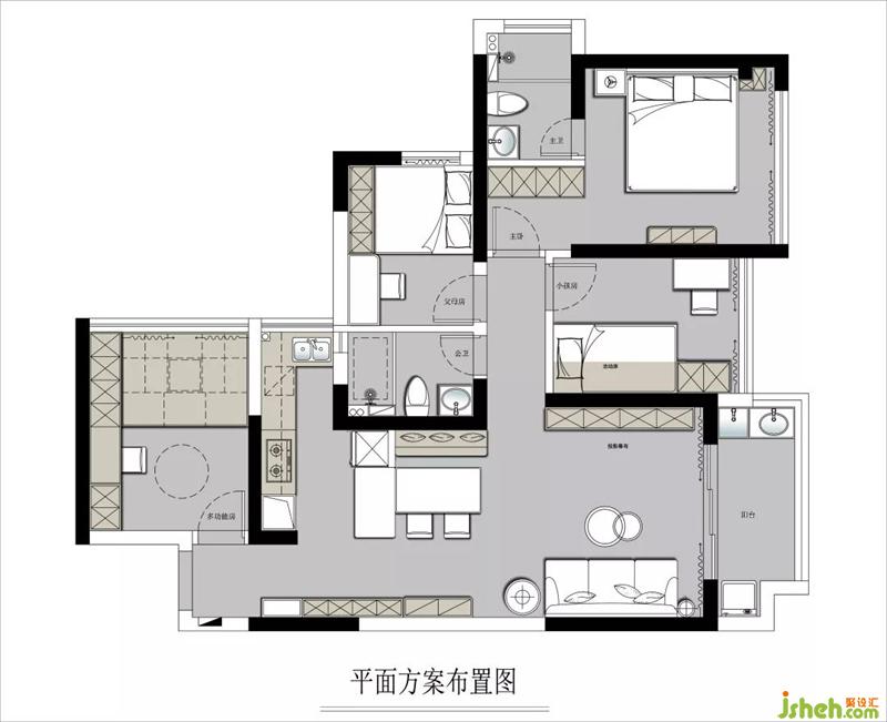 1.每個房間最大化拓展布局,滿足基本使用功能,同時深挖附加功能;