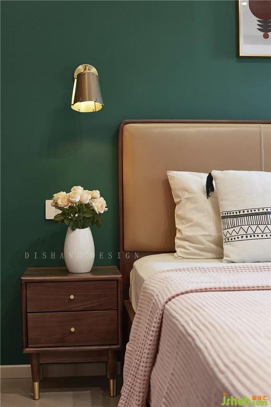雙人床的床頭較高并且本身就富有腔調(diào),壁燈之間創(chuàng)造出對稱美,空間祥和安穩(wěn)。