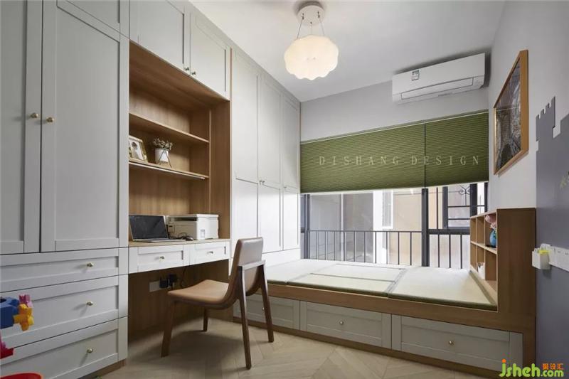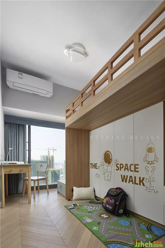 我們設(shè)置一體木床,上面是休息空間,下面是大大的玩耍及收納空間,我們不做過多的限制,沒有傳統(tǒng)的護(hù)欄、書柜等,小孩子就該大膽發(fā)揮做自己想做的事,要有“The space walk”這樣的心呀。裝修設(shè)計(jì)
