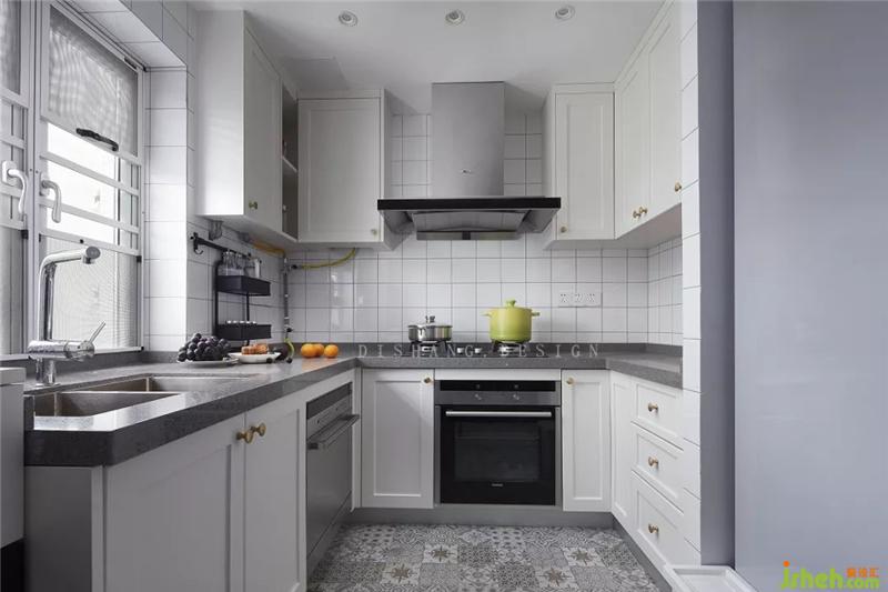 小小的廚房,收納卻杠杠滴!白色小瓷磚和櫥柜的結(jié)合,調(diào)高廚房亮度的同時,空間在視覺上得到延伸;U型廚房可以有效的擴(kuò)大操作面積,使操作動線變得流暢。裝修設(shè)計