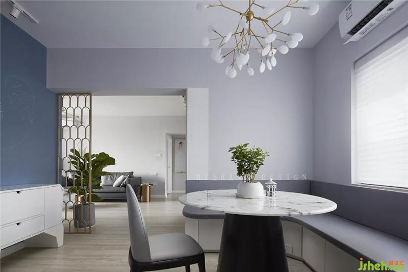 設(shè)計師利用戶型的優(yōu)勢,靠墻設(shè)置弧形卡座,增加收納的同時極大地拓展空間的實用性,更加能拉近家人之間的距離,有時候吃什么并不重要,重要的是和我們一起享受美食的人。裝修設(shè)計