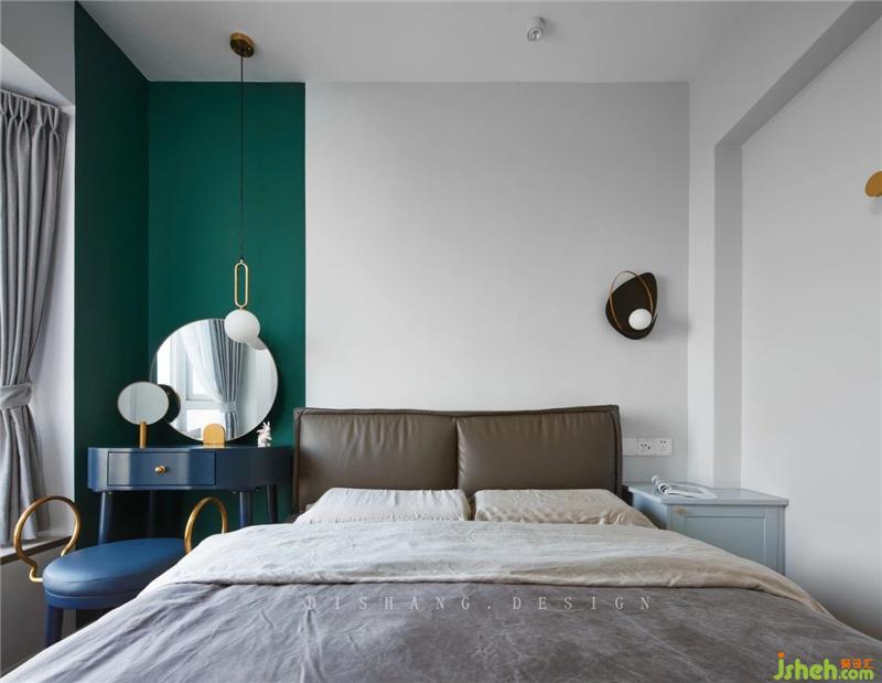 臥室家具雖少,卻布局輕巧,富有小情調(diào),床、桌、柜安排得宜,不浪費(fèi)半點(diǎn)空間;素靜潔白的空間里,注入一抹自然復(fù)古的生氣綠,躺在柔軟的床榻里,眺望遠(yuǎn)方的風(fēng)景,幸福感爆棚。