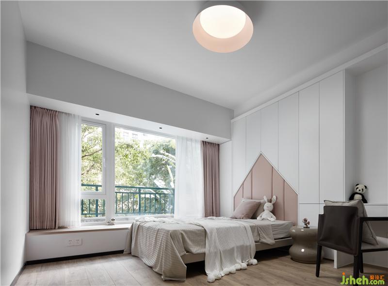白色與粉色的搭配,空氣中隱隱有一種甜蜜感,空間也多了份俏皮,陽光撒下來的那一瞬間,給人夢(mèng)幻的感覺。