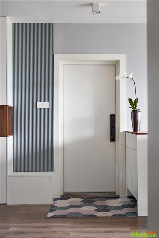 高級(jí)的霧霾藍(lán)長(zhǎng)城板,入處栩栩如生,倚墻而設(shè)的大型鞋柜,滿足鞋子收納的同時(shí),增加整屋的儲(chǔ)物空間,同時(shí)光線被引入到公共空間。