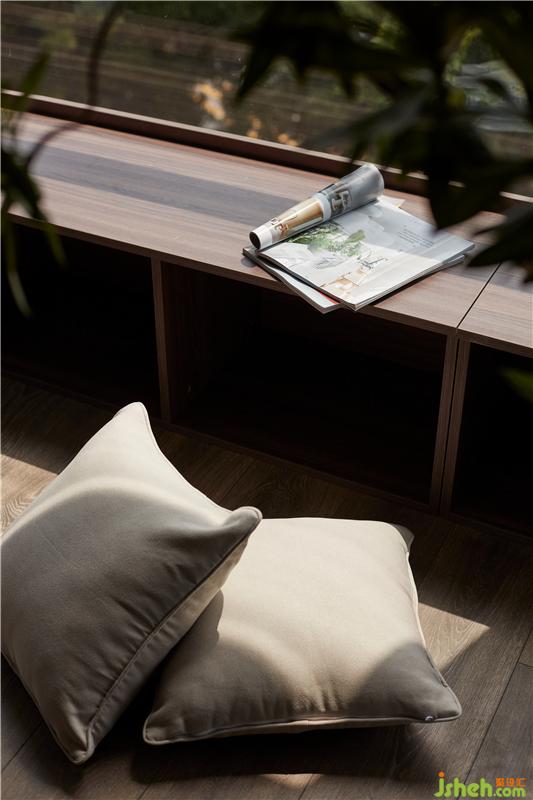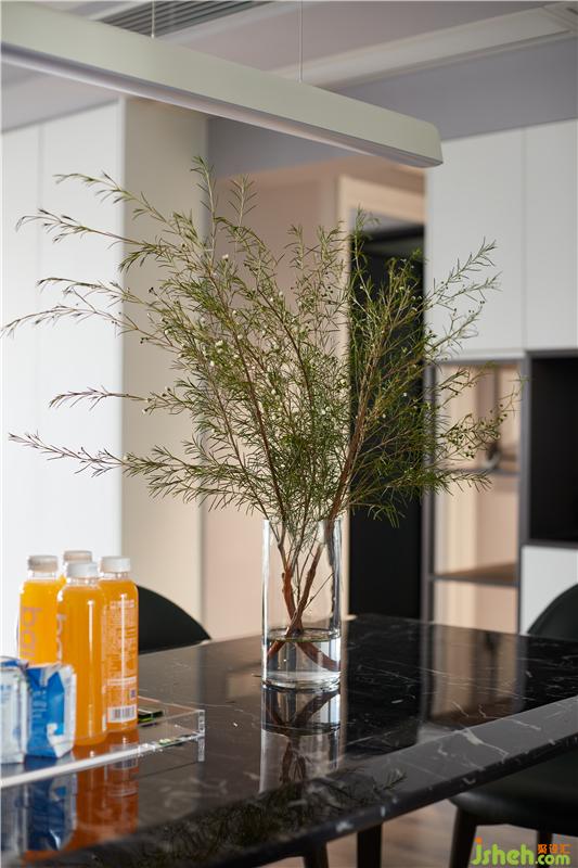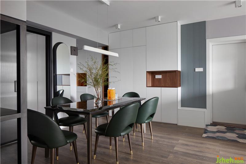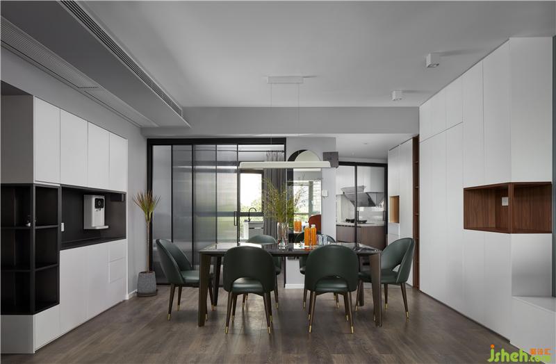 根據(jù)戶型設(shè)計(jì)的置頂餐邊柜,即是餐廳背景墻,也是公共空間與休憩空間的分界線。