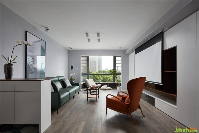 客廳是業(yè)主最常待的地方,簡(jiǎn)約的線條游走于客廳,沒(méi)有過(guò)多的裝飾,精挑細(xì)選下的都是實(shí)用/簡(jiǎn)約/美觀的,墨綠色皮質(zhì)沙發(fā),舒適的布藝單人椅,自由靈活的小茶幾/投影幕布,獨(dú)特的壁燈。在溫柔的自然光線下,仿佛置身于空靈的大自然中。