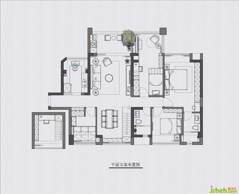 3、公共陽臺(tái)區(qū)域向客廳擴(kuò)充,同時(shí)一分為二,一部分并入兒童房作為小朋友的活動(dòng)區(qū),另一部分改為洗衣區(qū);