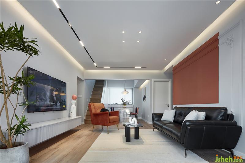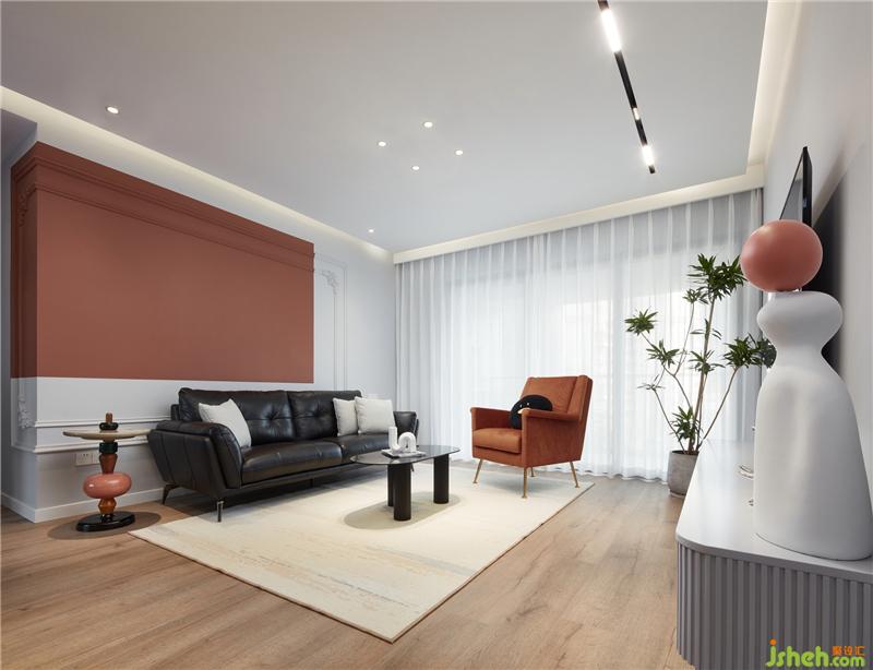 在這個(gè)空間中搶眼的莫過于沙發(fā)背景墻這一抹橙,低調(diào)沉穩(wěn)中透著氣質(zhì)感,讓整個(gè)空間鍍上了偏復(fù)古的基調(diào)。