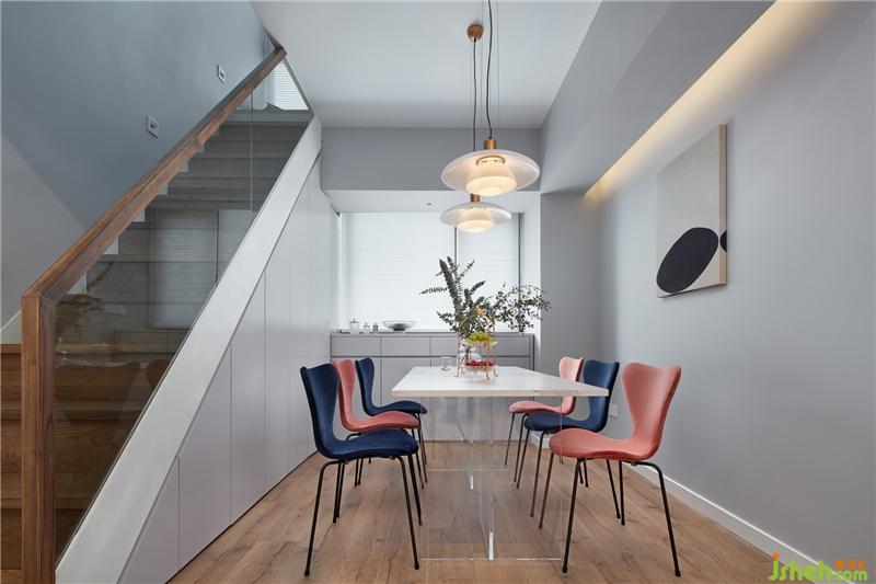 隱藏的燈帶透出柔和的光線,家居設(shè)計(jì)讓空間的立體感更強(qiáng),搭配餐桌上方的吊燈,為餐廳帶來無限溫情。