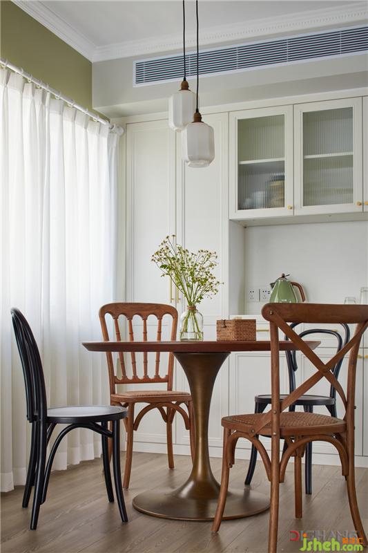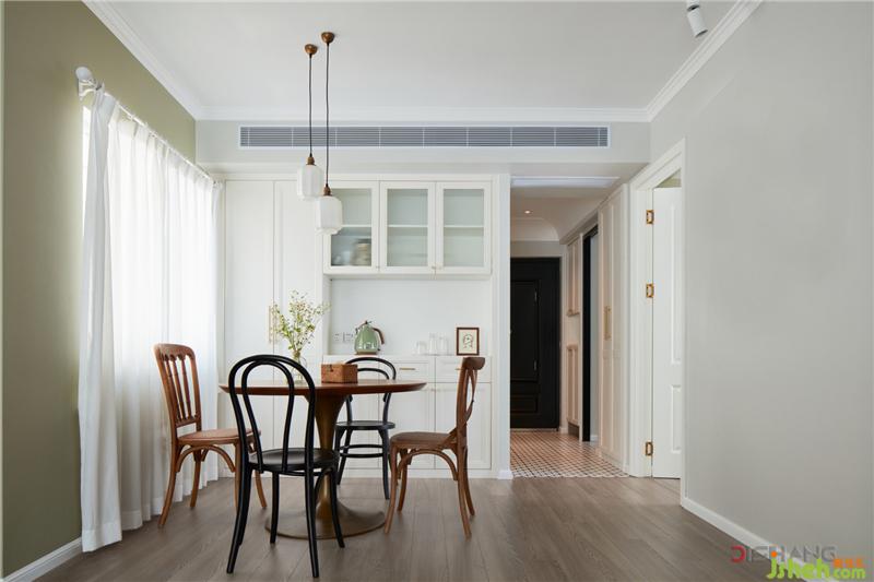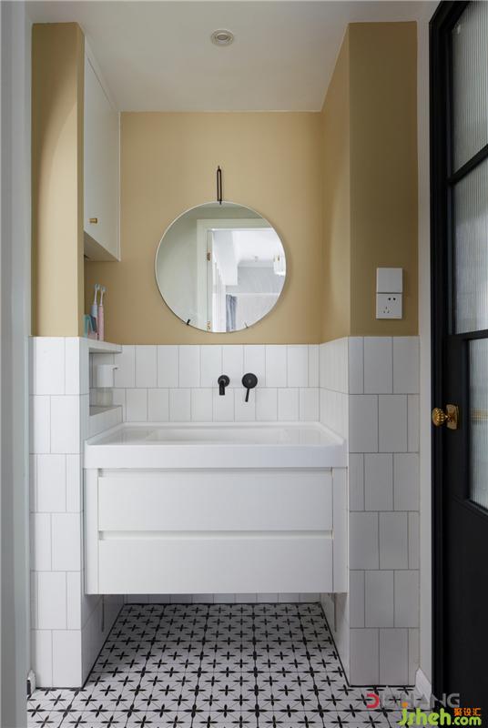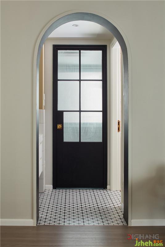 拱形門(mén)洞為空間增添幾分靈動(dòng)感和趣味性,地面與玄關(guān)、廚房的黑白花磚相呼應(yīng),散發(fā)迷人的復(fù)古魅力。