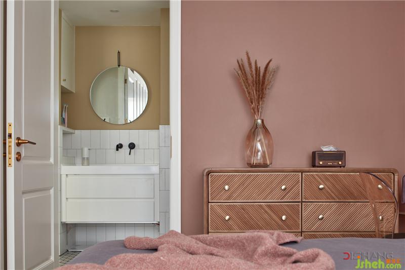 臟粉和白色的乳膠漆拼接出油畫(huà)般的溫柔和夢(mèng)幻,含而不露,保持著整個(gè)空間的色彩平衡。