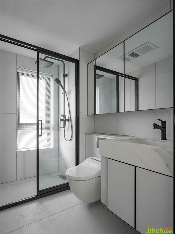 高級(jí)灰與白色瓷磚通鋪,玻璃推拉門(mén)實(shí)現(xiàn)干濕分區(qū),品質(zhì)感提升,做到功能性與裝飾性的結(jié)合。