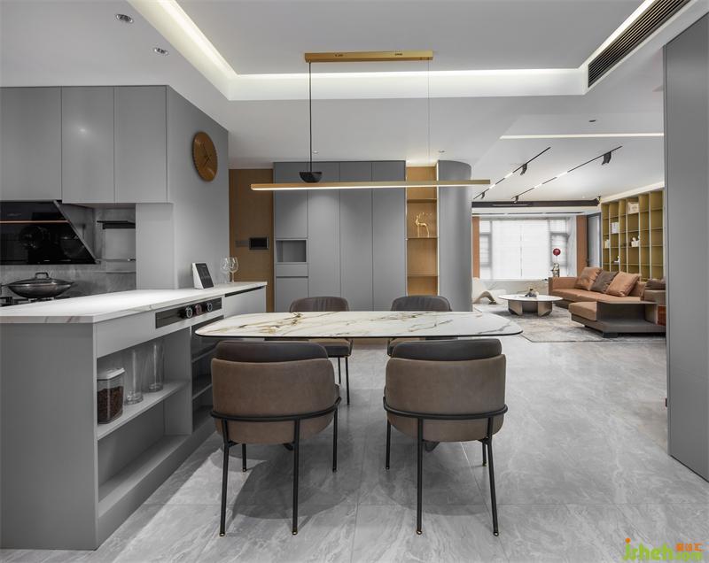 每一個(gè)角落都是風(fēng)景,大理石餐桌營(yíng)造出舒適的光感,開敞式布局營(yíng)造流動(dòng)的空間,這里是享受美食的餐廳區(qū)。
