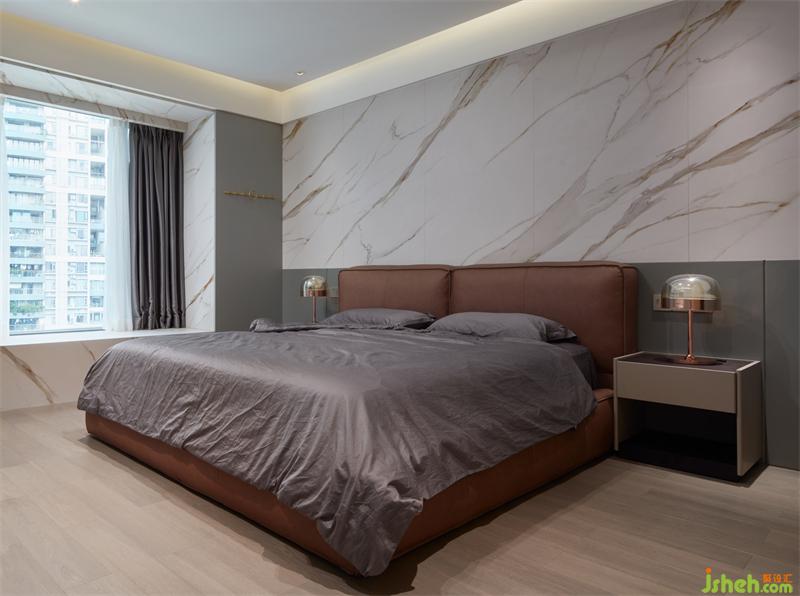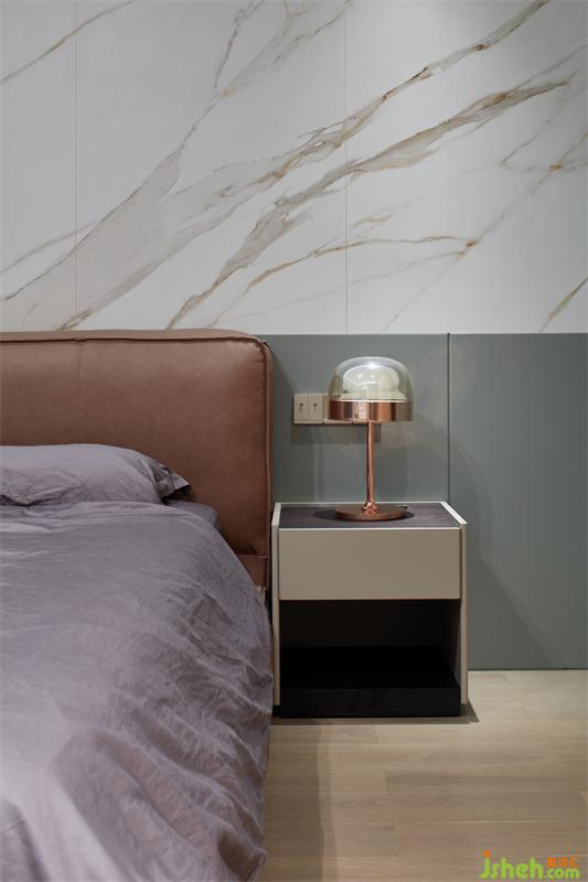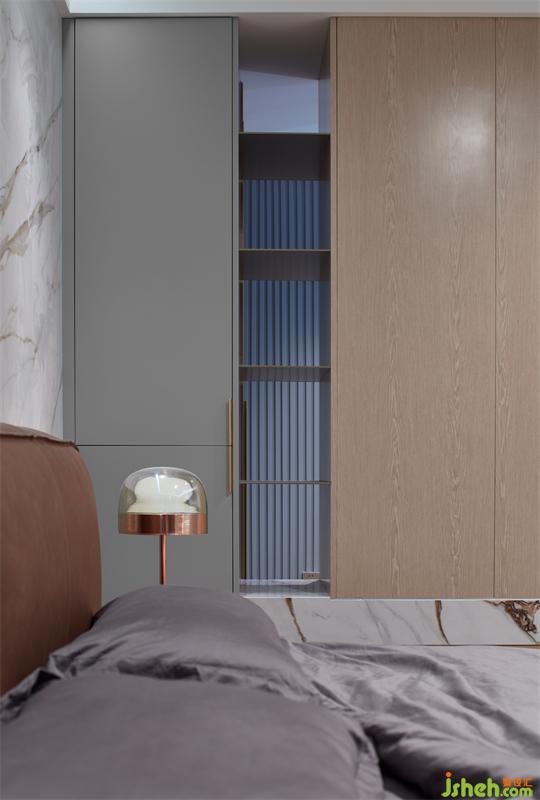 臥室中,巖板與木讓空間顯得更為松弛,輕盈,充足的光線給人明亮的視覺(jué)感受,灰色的床品打造了一個(gè)溫馨舒適的居住空間,衣柜處鏤空設(shè)計(jì)豐富了空間的細(xì)節(jié),提升了空間的藝術(shù)美感。