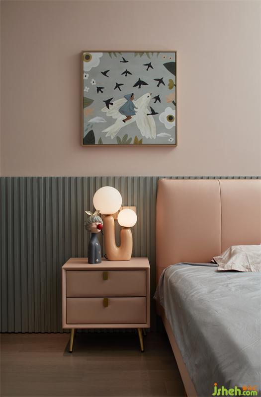 女孩房溫馨唯美,軟軟糯糯的粉色搭配淺灰衣柜,呈現(xiàn)了一個(gè)清新舒適的睡眠空間,純粹且安寧。