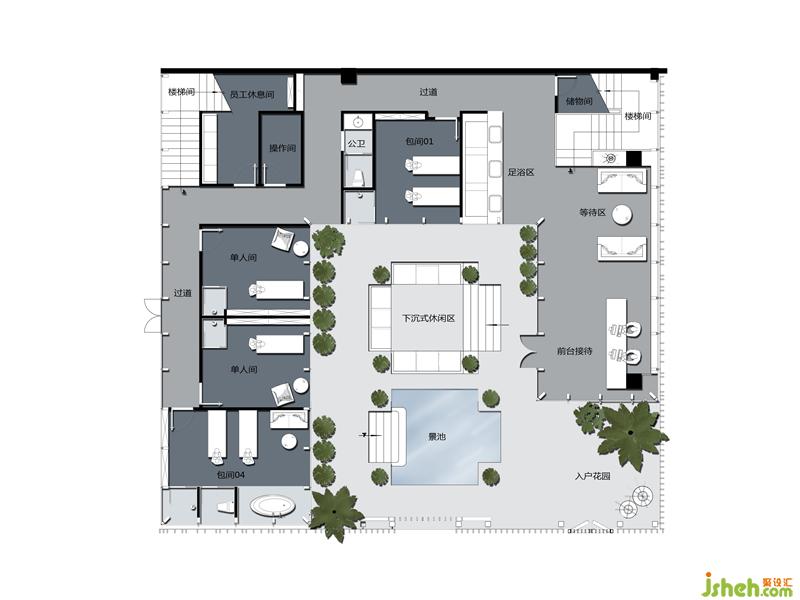空中花園拼花鋪貼著另一種異域風(fēng)情。會所設(shè)計