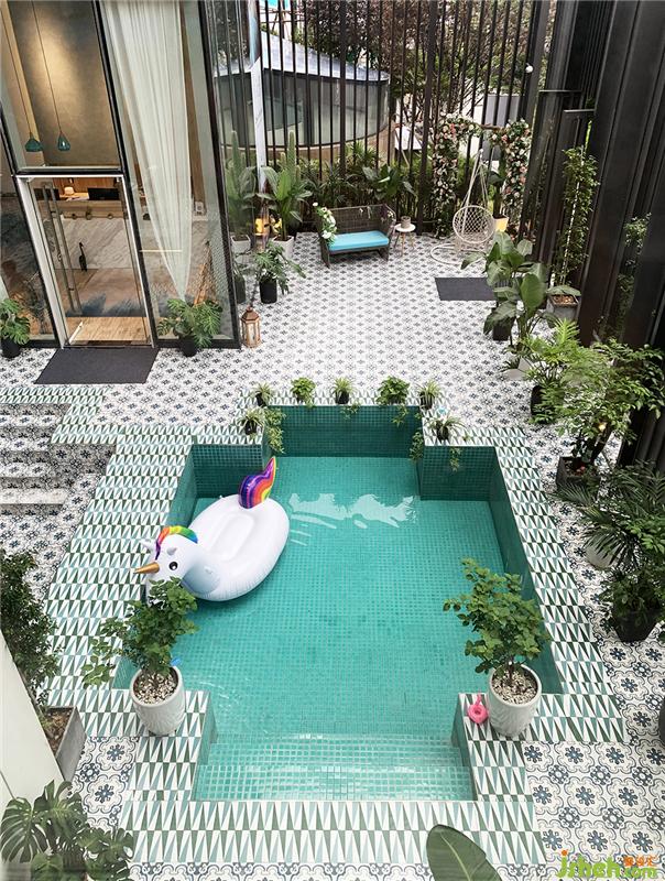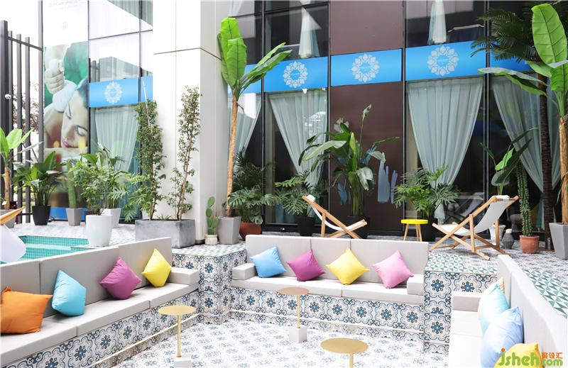 空間在此基礎(chǔ)上,更將泰式與摩洛哥風(fēng)情完美地融合其中,繽紛的靠枕、充氣獨角獸、蔚藍(lán)的小型游泳池,仿佛一下子穿越到放松愜意的東方小島,忍不住按下快門。會所設(shè)計