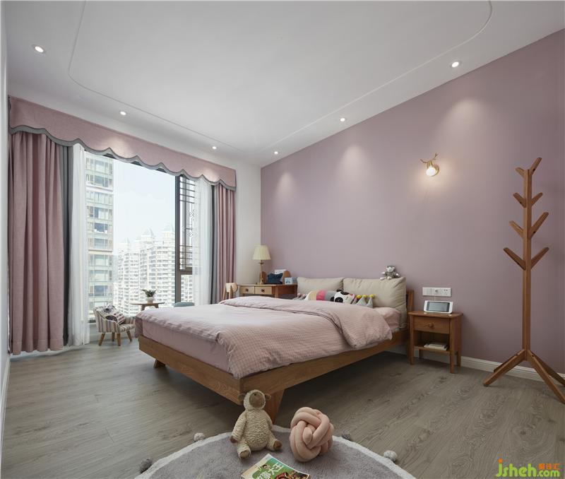 女兒房采用稍帶灰調(diào)的藕粉色,滿滿少女心的粉紅色裝點(diǎn)過(guò)多少女孩子的公主夢(mèng)。