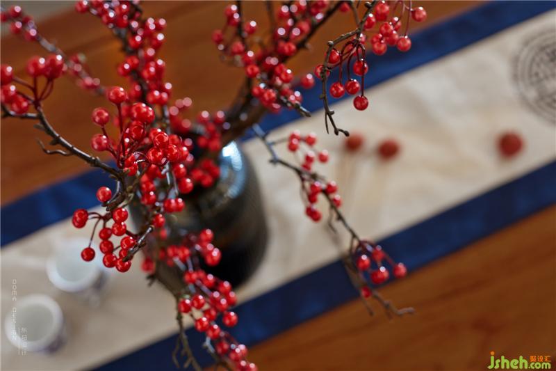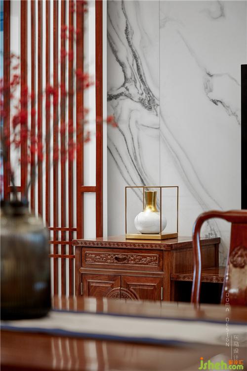 2、餐廳采用了圓桌的設(shè)計(jì),而客廳是方形的,然而與客廳形成了“天圓地方”的東方之美。