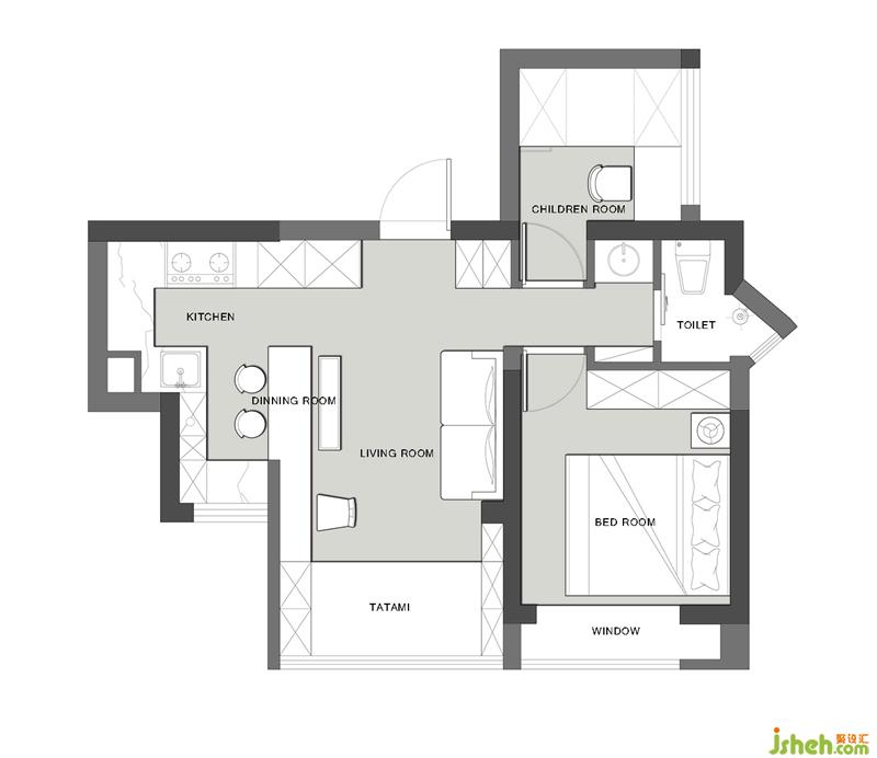 原戶型是一套41㎡的兩居室,面積和格局的限制和設(shè)計(jì)需求形成了很大的反差,給我們?cè)O(shè)計(jì)師帶來了極大的挑戰(zhàn)性。家居設(shè)計(jì)要解決一家三口居住的生活方式和訴求,首先要打破空間的界限和處理好功能區(qū)域的劃分,還有采光通風(fēng)等問題。本案業(yè)主是一對(duì)80后夫妻,有一個(gè)可愛的女兒。這個(gè)房子是他們買來方便孩子上學(xué)的學(xué)區(qū)房,由于房子面積比較小,只有41㎡。溝通的時(shí)候業(yè)主要求有大客廳、大廚房、餐廳的功能;而且要有一個(gè)一家子可以在客廳玩耍、互動(dòng)的空間。同時(shí)她之前的家里有很多書籍要搬過來,要考慮放置書籍的位置以及強(qiáng)大的儲(chǔ)物功能。對(duì)衛(wèi)生間要求能做到三分離。兒童房雖然面積小,但還是希望有獨(dú)立的寫字臺(tái)和儲(chǔ)藏衣物的柜子。下面讓我們一起來看看這個(gè)“小家”的“銳變”吧。