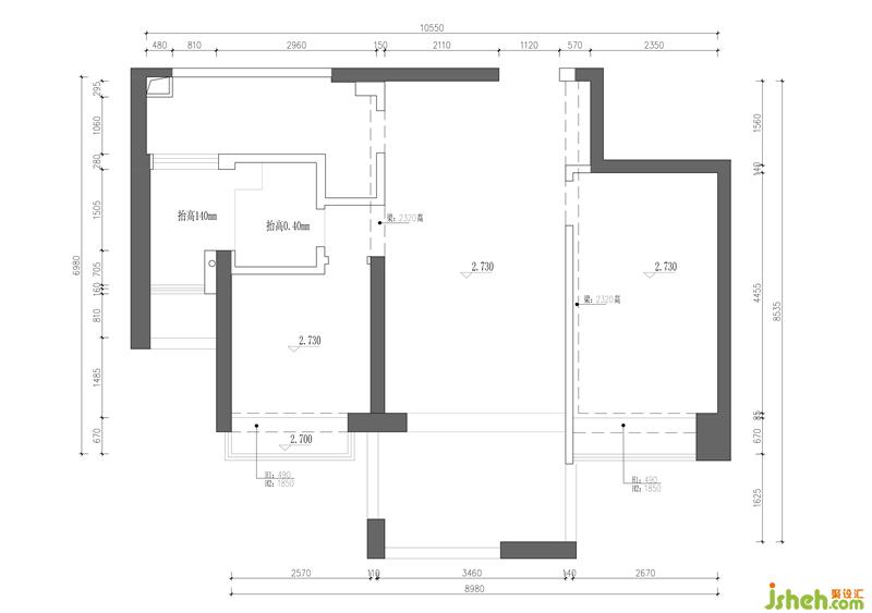 ①原來(lái)衛(wèi)生間抬高部分太多,布局比較亂