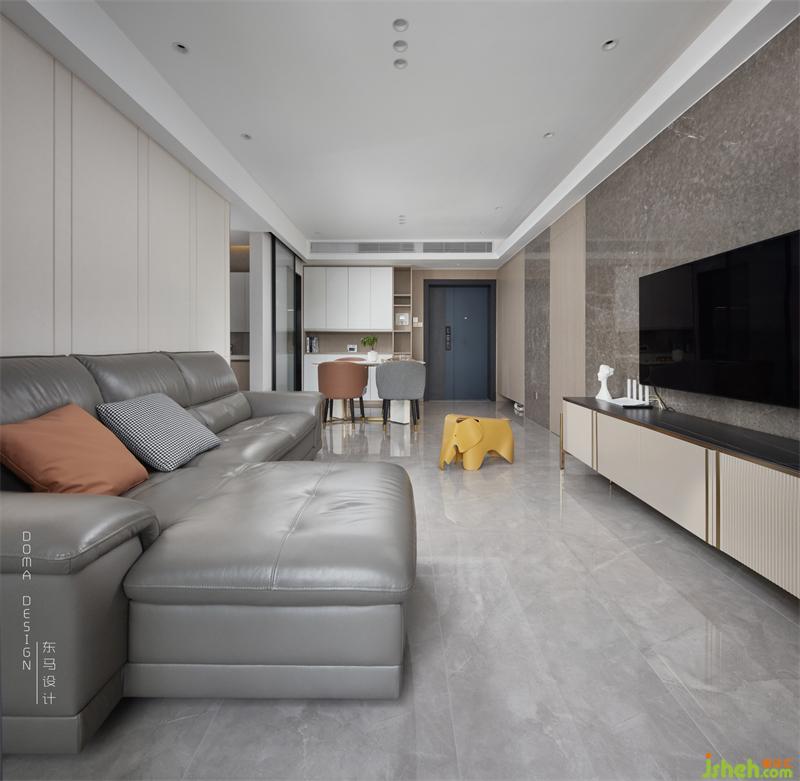 客廳的空間和餐廳是個(gè)長(zhǎng)方體的空間,沒有繁瑣的裝飾,用現(xiàn)代表現(xiàn)的方式,地面是灰色地磚通鋪效果,天花是簡(jiǎn)約的造型無(wú)主燈設(shè)計(jì),進(jìn)門左邊是一排木飾面鞋柜,設(shè)計(jì)上我們?cè)O(shè)計(jì)無(wú)拉手柜門,顏色是木色細(xì)紋偏暖,背景墻是選用自然的大理石,結(jié)合暗門、柜子材料交替碰撞的設(shè)計(jì)元素,體現(xiàn)出整體干凈、秩序?qū)哟蔚目臻g。