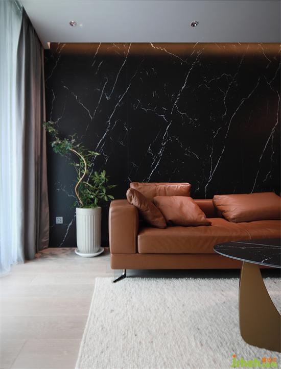 Comfortable space atmosphere can feel the comfort of home, but also can put down the inner fatigue, showing the most comfortable inner life. The eclectic mix of dark colors and wood colors adds mystery and modern flavor to the space, making the space appear pure and natural. Stepping into the living room, a strong sense of relaxation and mystery envelops the whole space. Brown sofa, exquisite coffee table, minimalist plane ceiling, and the concave and convex paving of grey and black rock slabs create a different three-dimensional feeling for the living room.