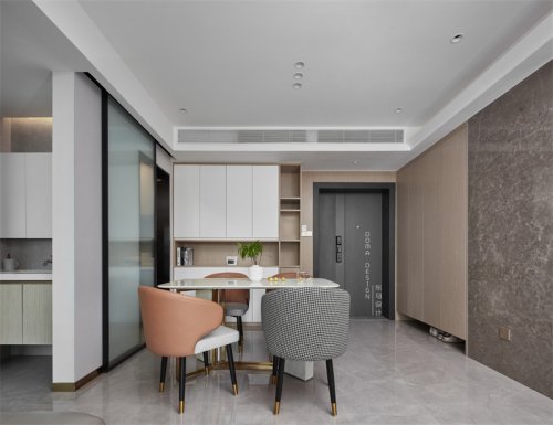 The case is located in Nanshan District of Shenzhen City, Manshu West Bank, has in Shenzhen Bay park around, the owner often lives abroad, this is the first home in Shenzhen. In the design, dark tonality with warm color floor, in the noisy city and high pressure life, to create a home, relaxed, quiet and elegant space, other collocation has a comfortable, low-key, very tasteful, more temperament, to achieve the owner's pursuit of living sense.