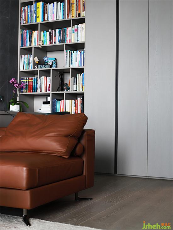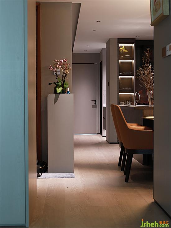 The owner has a large demand for the cabinet body and the function of the desk, so the corner of the living room is arranged with a desk multifunctional cabinet, which is convenient for storing and placing articles and more books. At the same time, the material and shape highlight the overall texture, and the warm color light source of the open grid makes.