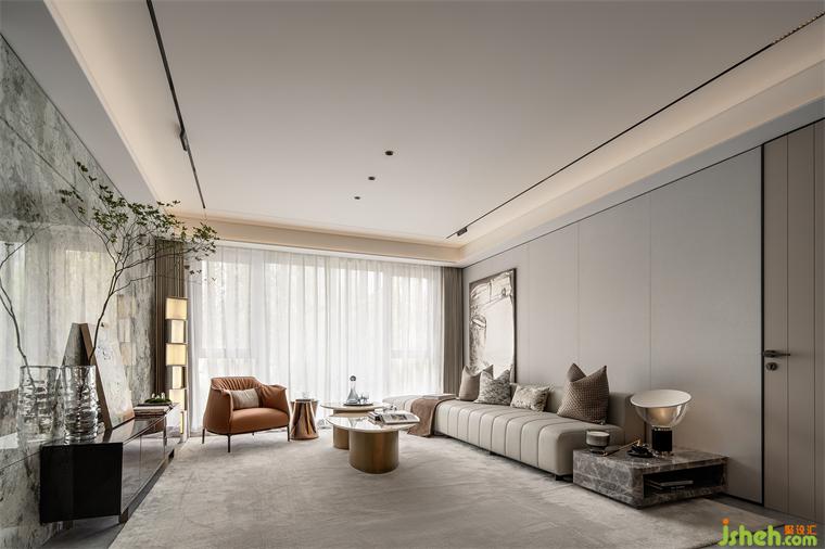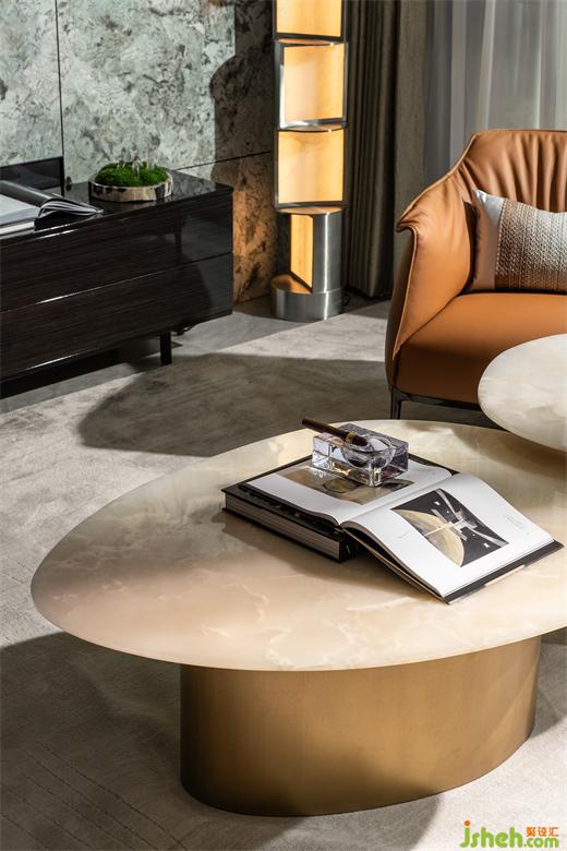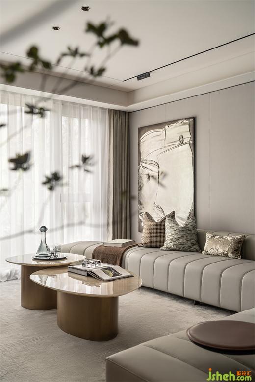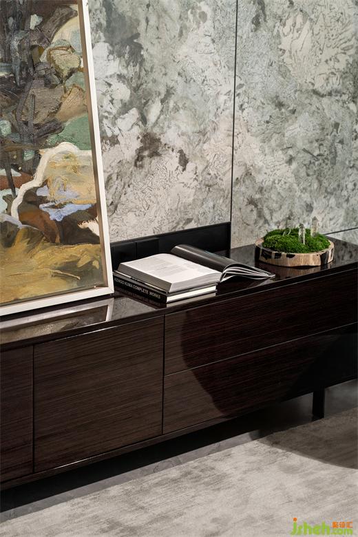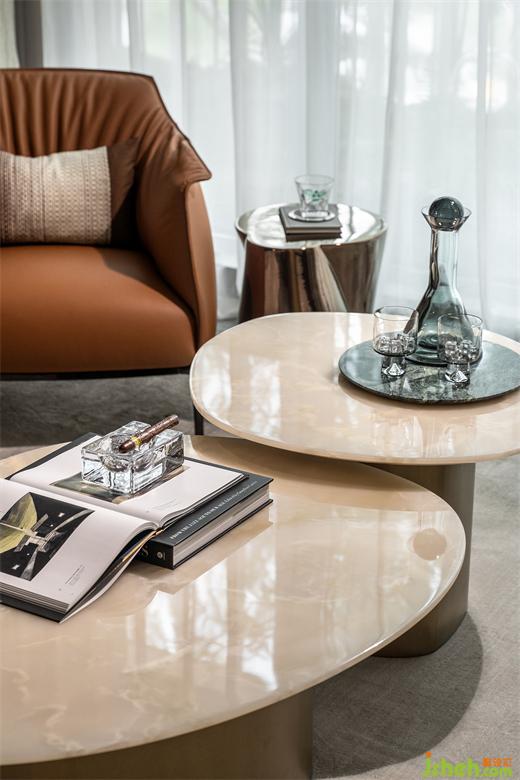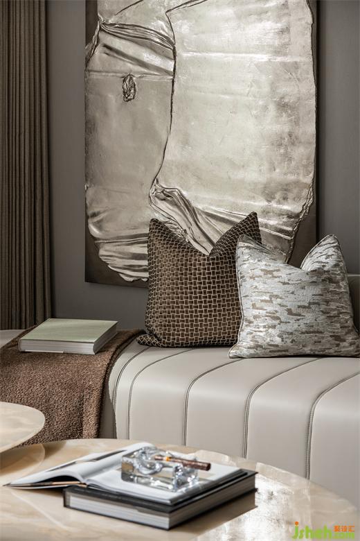 進(jìn)口家具和藝術(shù)裝飾品的呈現(xiàn)在于細(xì)節(jié)和品質(zhì),簡潔精致的造型設(shè)計詮釋生活的靈感,形成經(jīng)典優(yōu)雅的空間場域??蛷d大面積藝術(shù)巖板背景墻設(shè)計,以非寫實(shí)的方式創(chuàng)造出抽象的藝術(shù)效果,展現(xiàn)出強(qiáng)烈的視覺沖擊力。