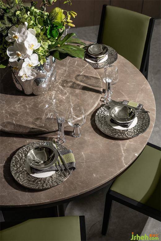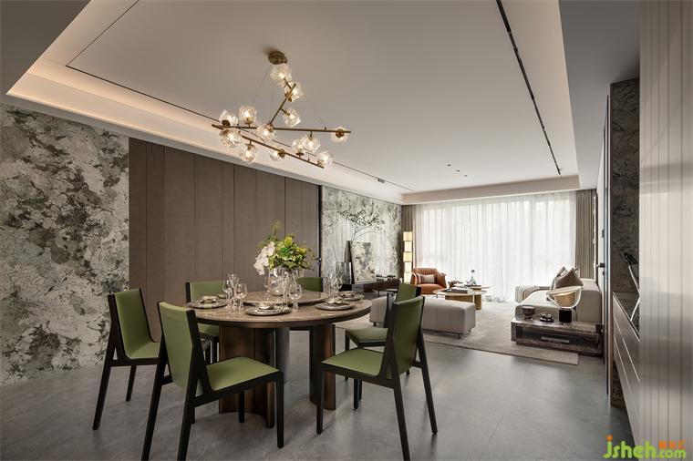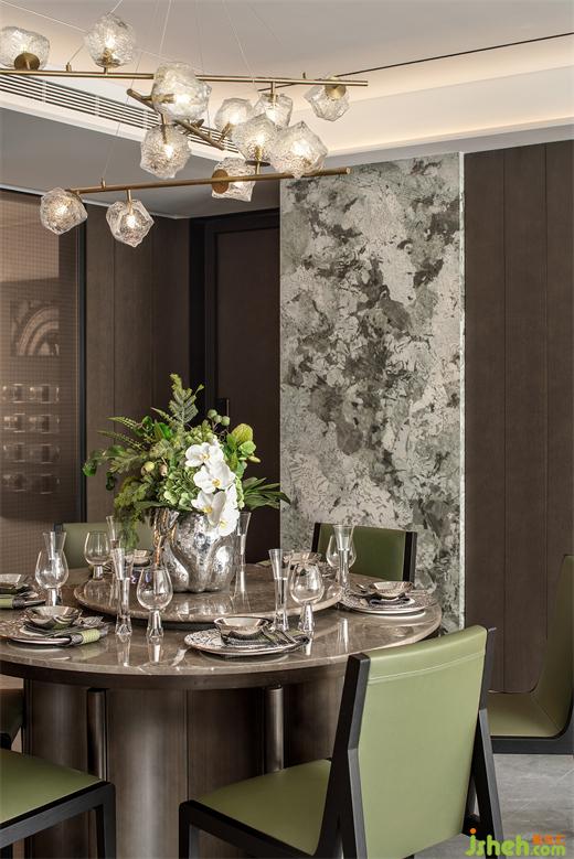 餐廳空間通透大氣,一體式的布局設(shè)計(jì)讓交流動線更加流暢。樣板間設(shè)計(jì)大理石餐桌與墻面互相呼應(yīng),華麗和內(nèi)斂的兩極碰撞,留出恰到好處的余韻。生機(jī)盎然的綠色點(diǎn)綴其間,俗世尋常躍然紙上。